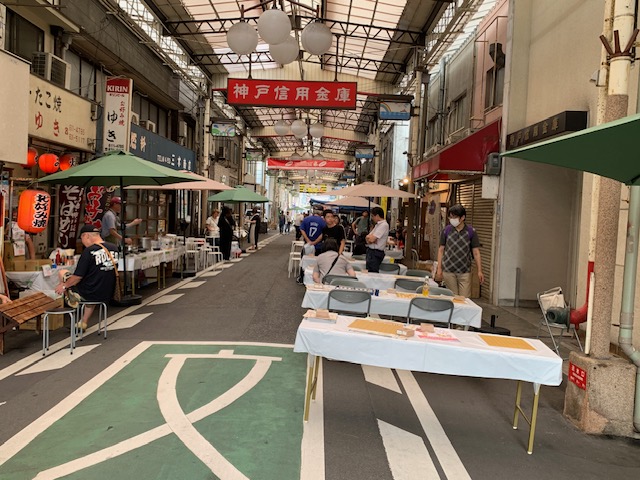 2025年9月13日(土)新長田パラソルバザールに出店しました。新長田駅前広場からレトロな丸五市場、西神戸センター街などあちこちの商店街で色々な催し物が開催されていました!