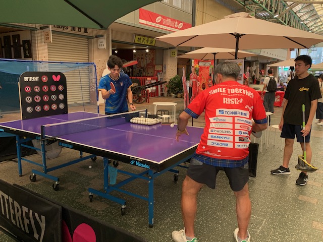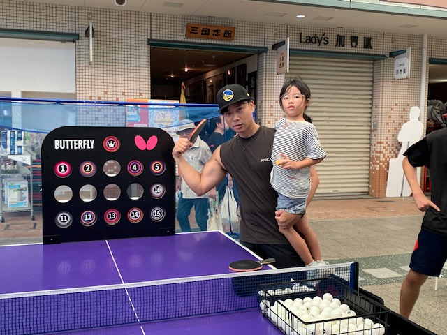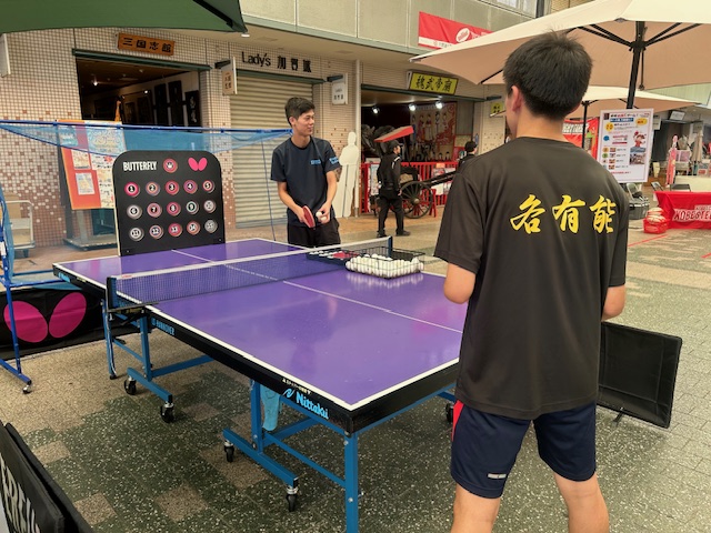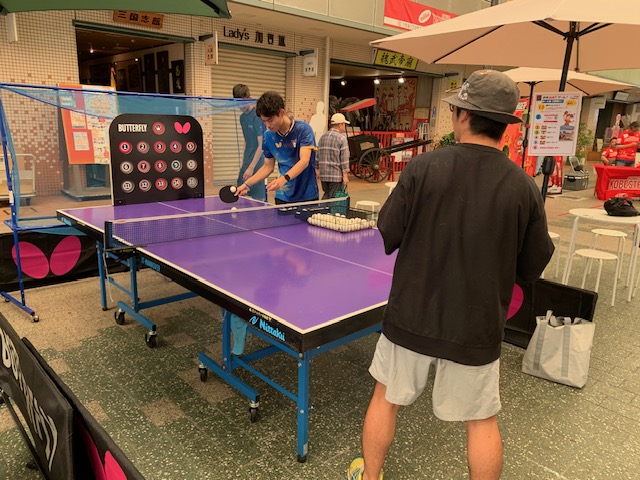 当店は六間道商店街で的当てゲームのブースを設置しました。お隣はラグビーで有名な神戸スティーラーズさん!スタッフの皆さんも挑戦していました(笑)